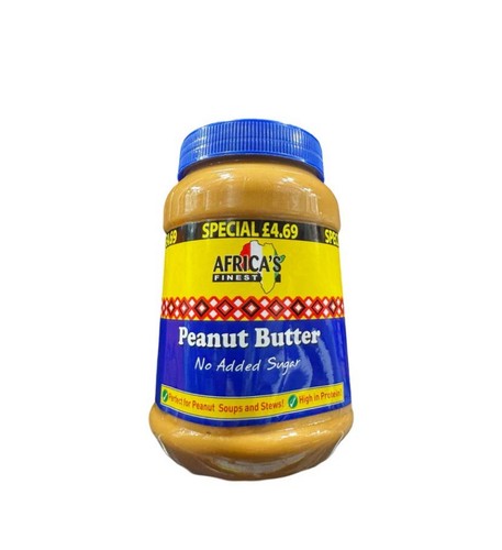 African Finest Peanut Butter NAS is natural peanut butter made from roasted ground peanuts with no added sugar or salt. It delivers a rich nutty taste and smooth spreadable texture.