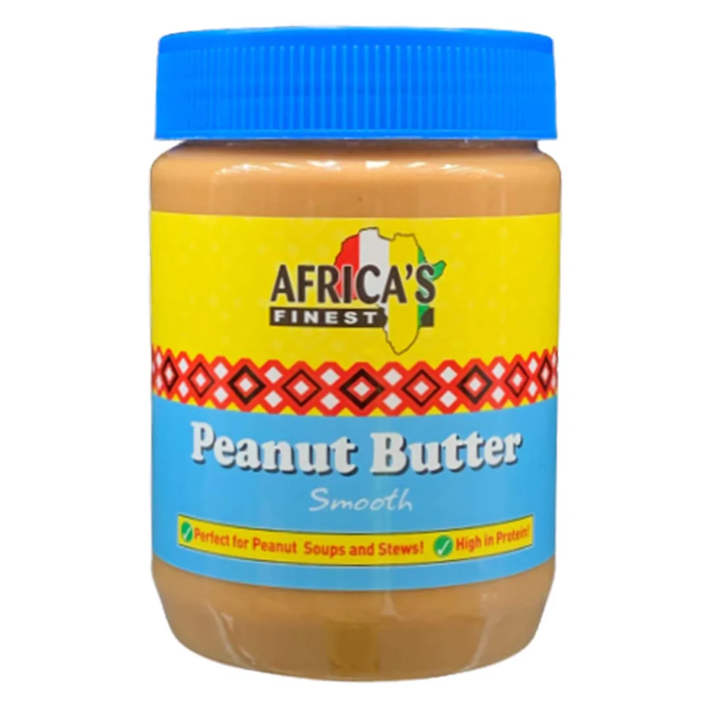 African Finest Smooth Peanut Butter is creamy peanut spread made from roasted peanuts. It is perfect for sandwiches, cooking, baking, and smoothies.