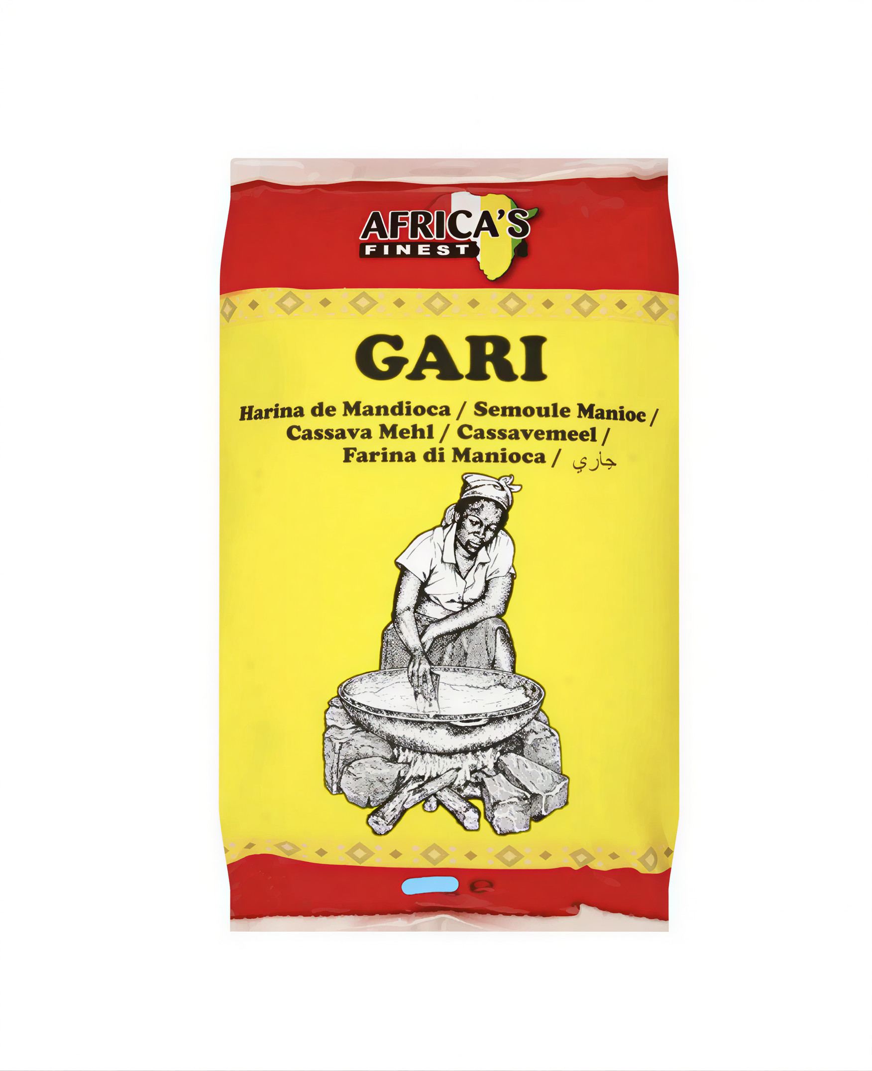 African Finest Yellow Gari is fermented cassava granules processed with palm oil to give its yellow colour and rich taste. It can be soaked as a snack or prepared into eba served with soups.