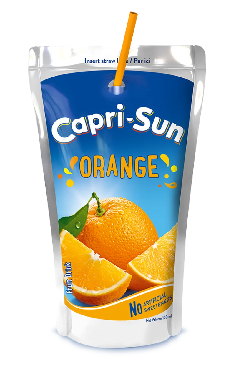 Capri-Sun Orange delivers a sweet and tangy orange fruit drink in a handy pouch. It is convenient, refreshing, and perfect for quick hydration.