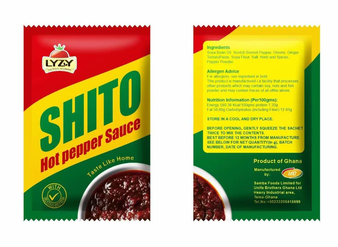 Lyzy Shito 20g is a spicy Ghanaian black pepper sauce made with chili, oil, dried fish, and spices. It adds bold flavor to rice dishes, snacks, and grilled foods.