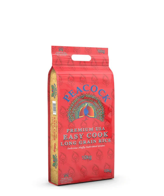 Peacock Easy Cook Rice 10kg is high-quality rice designed to cook quickly while maintaining soft texture and separate grains. It is suitable for busy households and catering use.